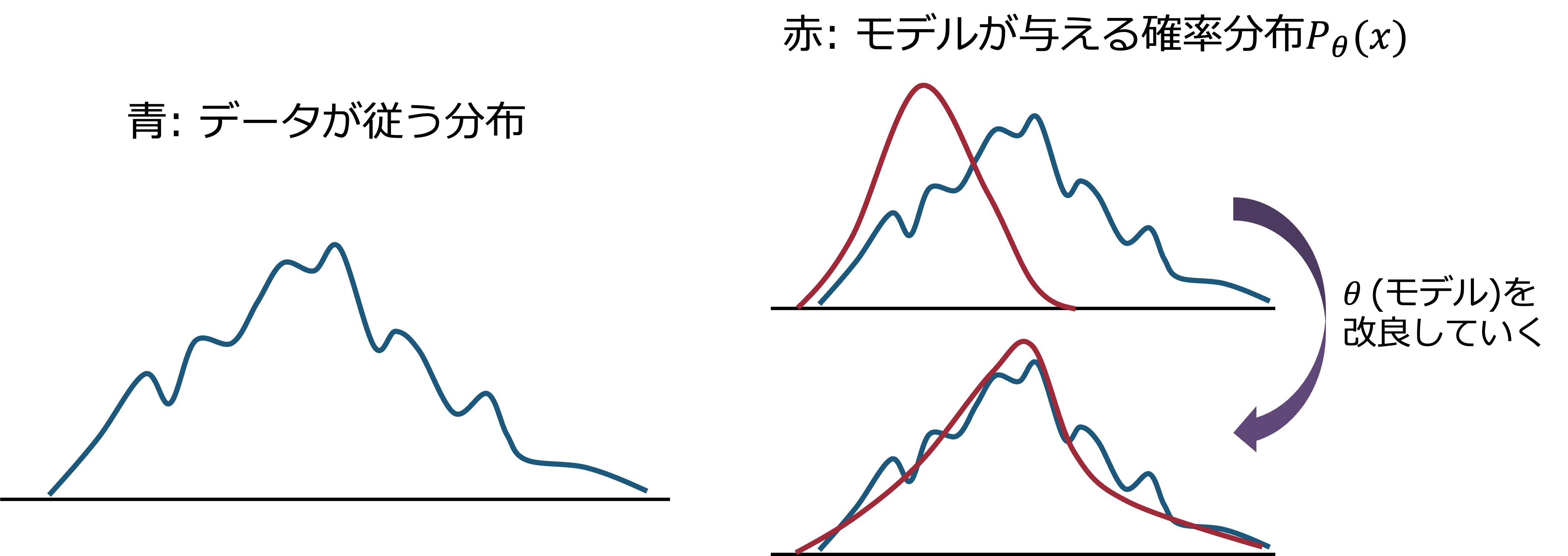 我々が普段目にする画像や音声、テキストなどのデータは、現実世界の様々な要素が複雑に絡み合って生成されている。 その背景には確率分布(生成分布)を持っていて、その分布からサンプリングされたデータが我々の目に入っていると考えることができる。 もちろん、そうした生成分布を直接観測することはできないが、生成モデルはその生成分布を学習し、そこから新たなデータを生成することを目指している。